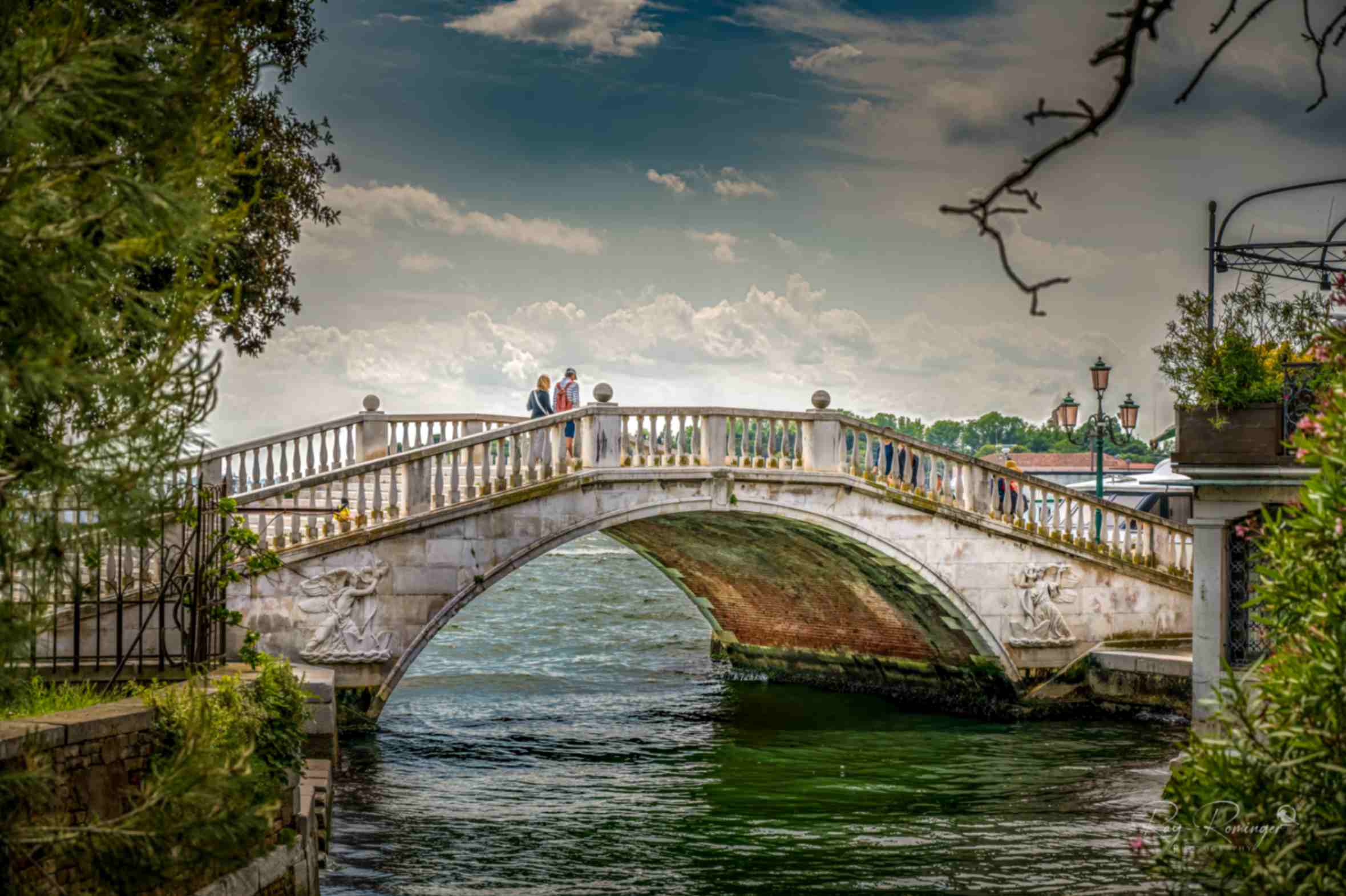 pause above the lagoon. A timeless Venetian crossing where love and history