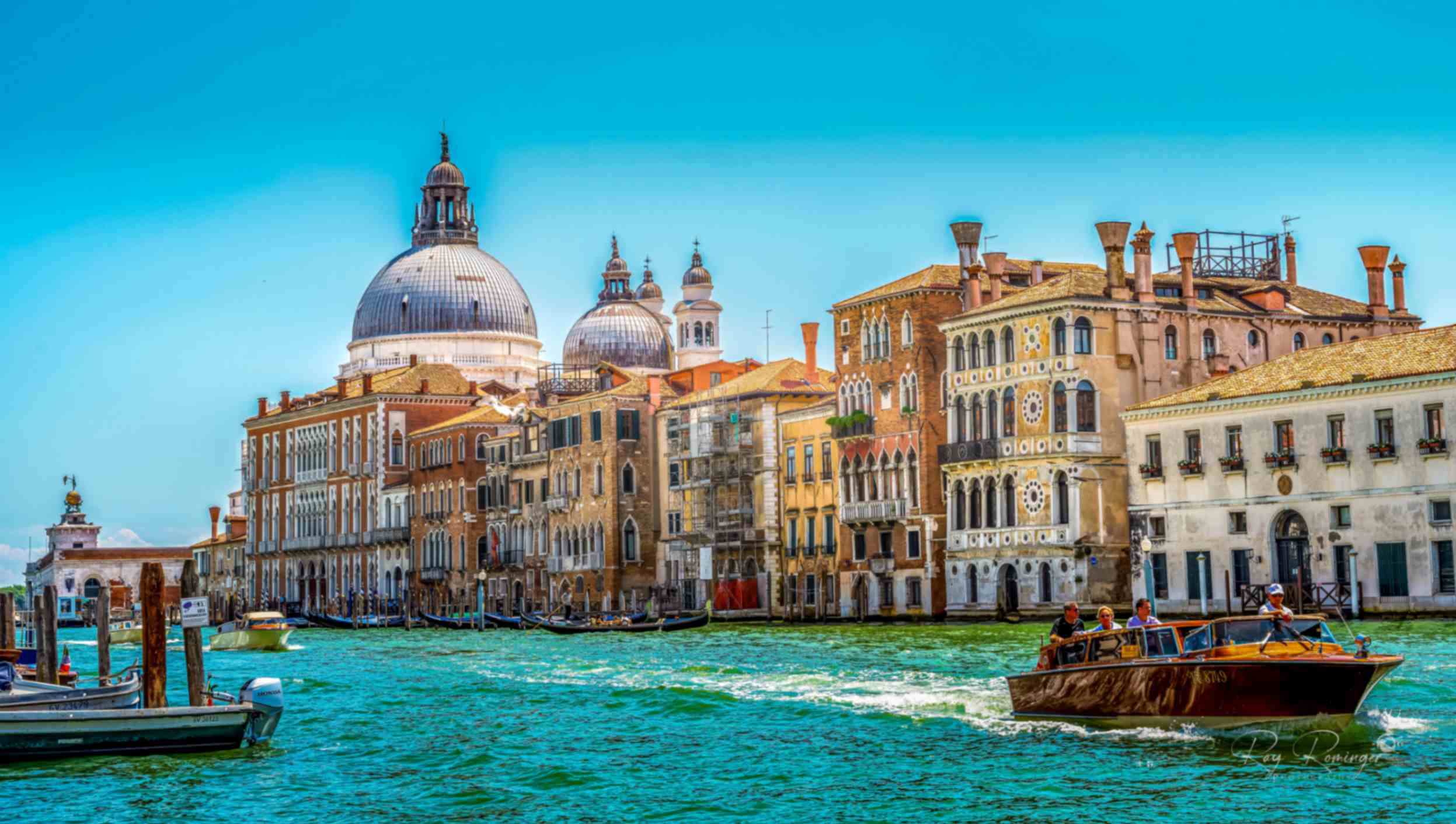 The domes of Santa Maria della Salute rise proudly above the Venetian skyline,