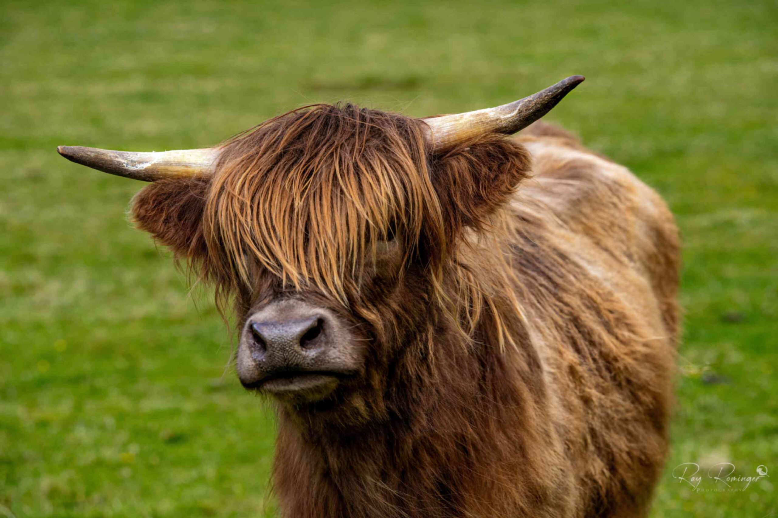 The iconic Highland cow stands proud, its shaggy coat and sweeping