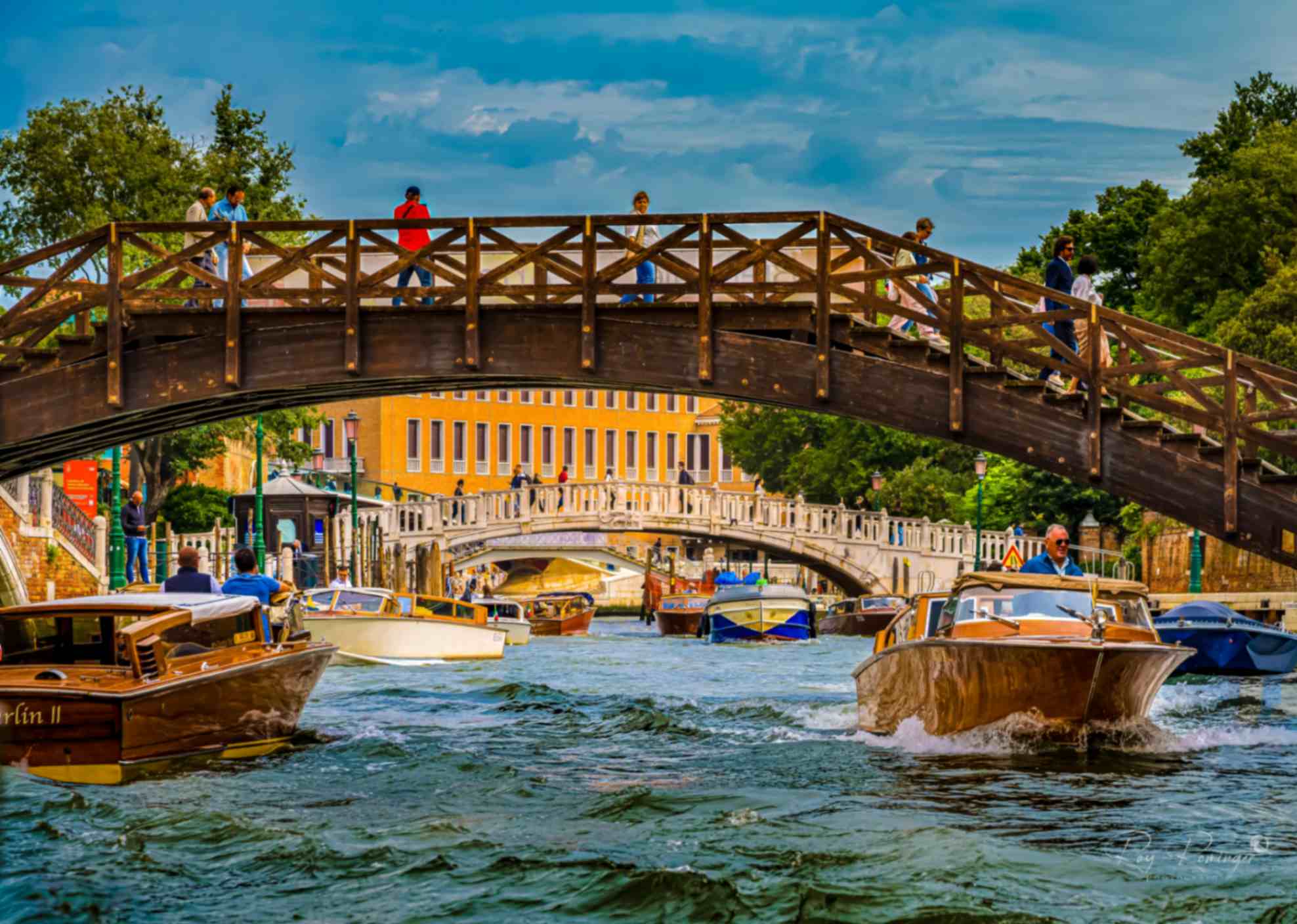 taxi beneath the Accademia Bridge, where the city’s energy is on full display. Sleek